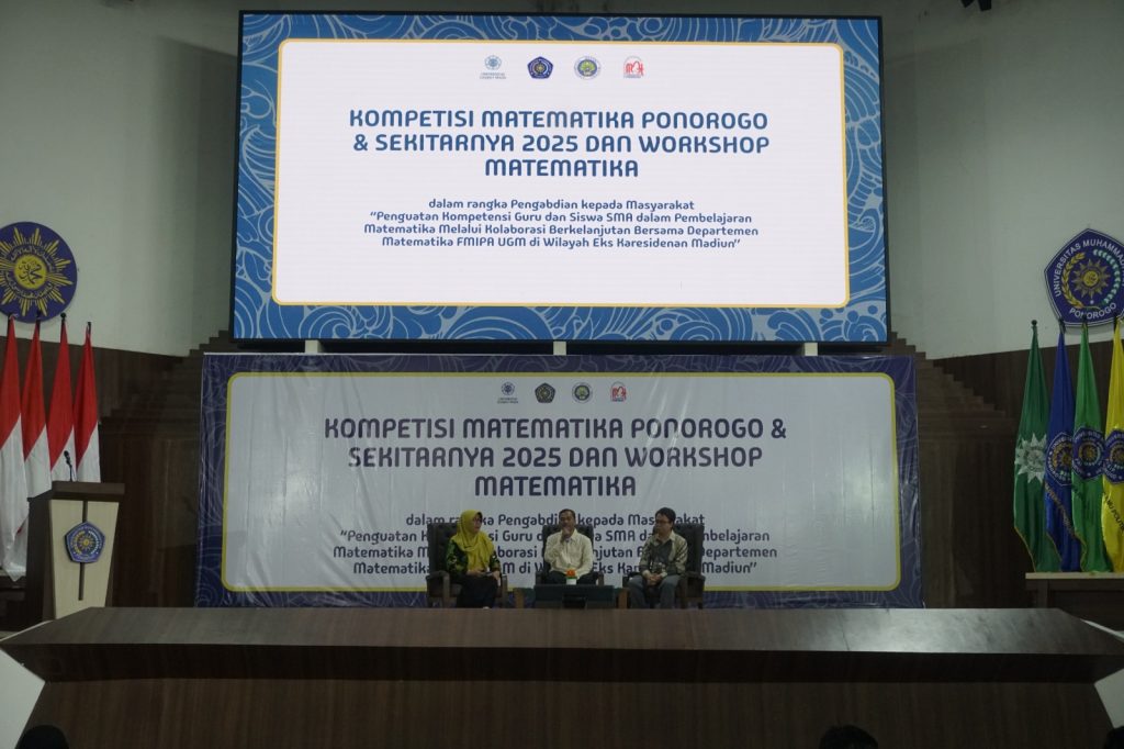 Tim Pengabdian kepada Masyarakat Departemen Matematika Fakultas MIPA Universitas Gadjah Mada (UGM) bekerja sama dengan Program Studi Pendidikan Matematika FKIP Universitas Muhammadiyah Ponorogo (UMPO) sebagai tuan rumah, FMIPA Universitas Negeri Malang (UM Malang), serta MGMP Matematika SMA Ponorogo, menyelenggarakan Kompetisi Matematika bagi siswa SMA se-Ponorogo dan Workshop Matematika bagi guru SMA. Kegiatan ini bertujuan untuk mengasah potensi akademik siswa sekaligus memperkuat kompetensi guru dalam menerapkan pembelajaran matematika yang inovatif dan kontekstual. ...